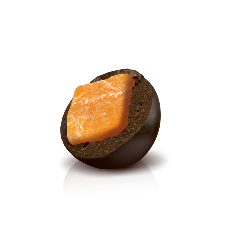 Cioccolato fondente (60%) (zucchero, pasta di cacao*, burro di cacao*, emulsionante: lecitina di SOIA, aroma: vanillina); cacao min. 70%; albicocche essiccate (40%) (albicocche, antiossidante: anidride solforosa e solfiti); agente di rivestimento: gomma arabica, gommalacca. *Certificato Rainforest Alliance.