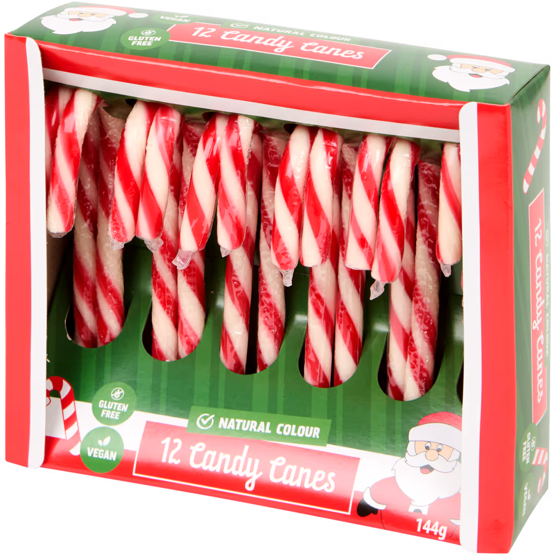 🍬 Deliziosi Candy Cane natalizi 🎅 confezione da 12 bastoncini di zucchero (144g) dal gusto dolce e festivo ❤️ Perfetti per decorare l’albero 🎄, regalare o gustare durante le feste!