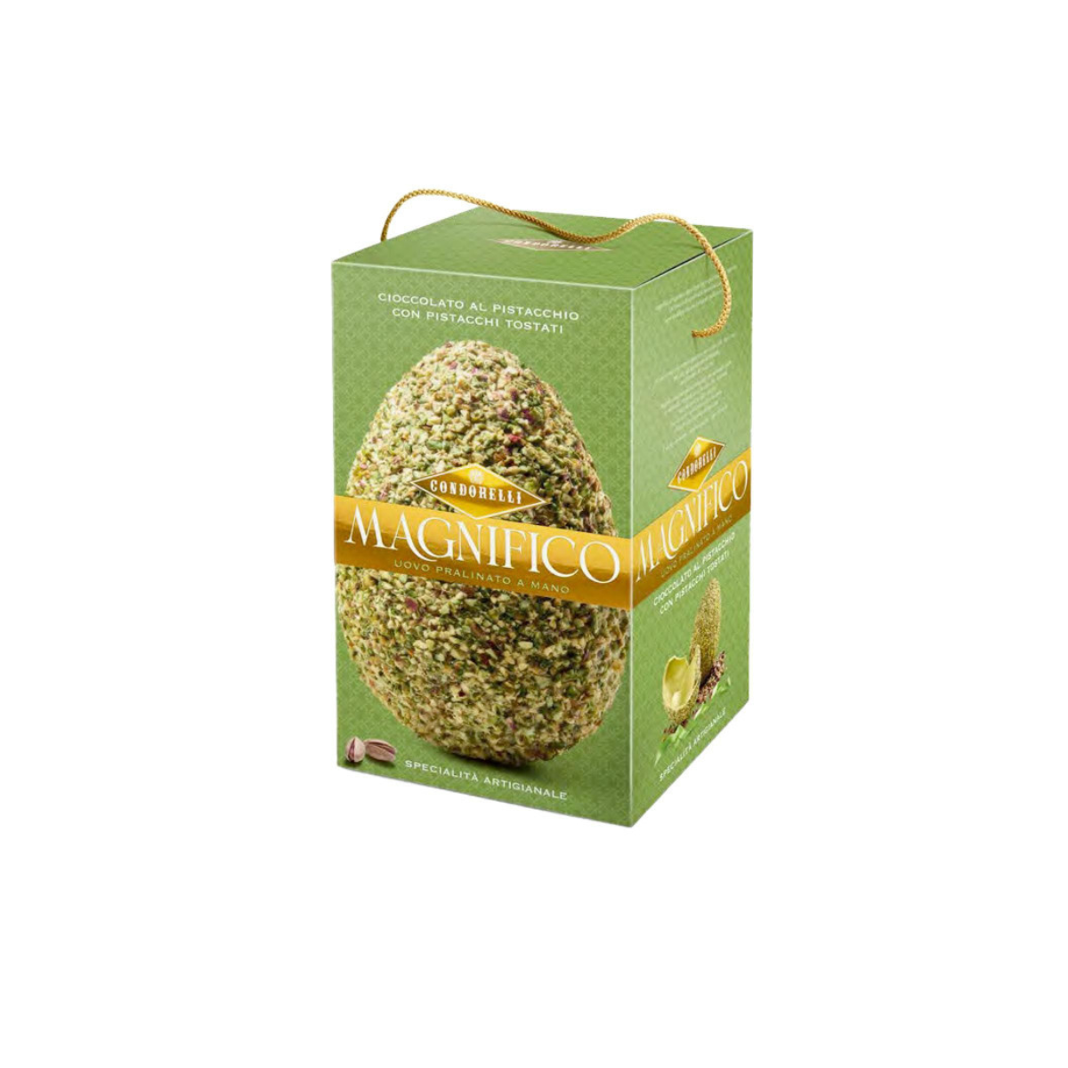 Un’eccellenza firmata Condorelli, simbolo di tradizione e qualità dolciaria. Questo uovo di cioccolato al pistacchio è pralinato a mano e arricchito con pistacchi tostati, selezionati per esaltare ogni morso con un gusto intenso e avvolgente.