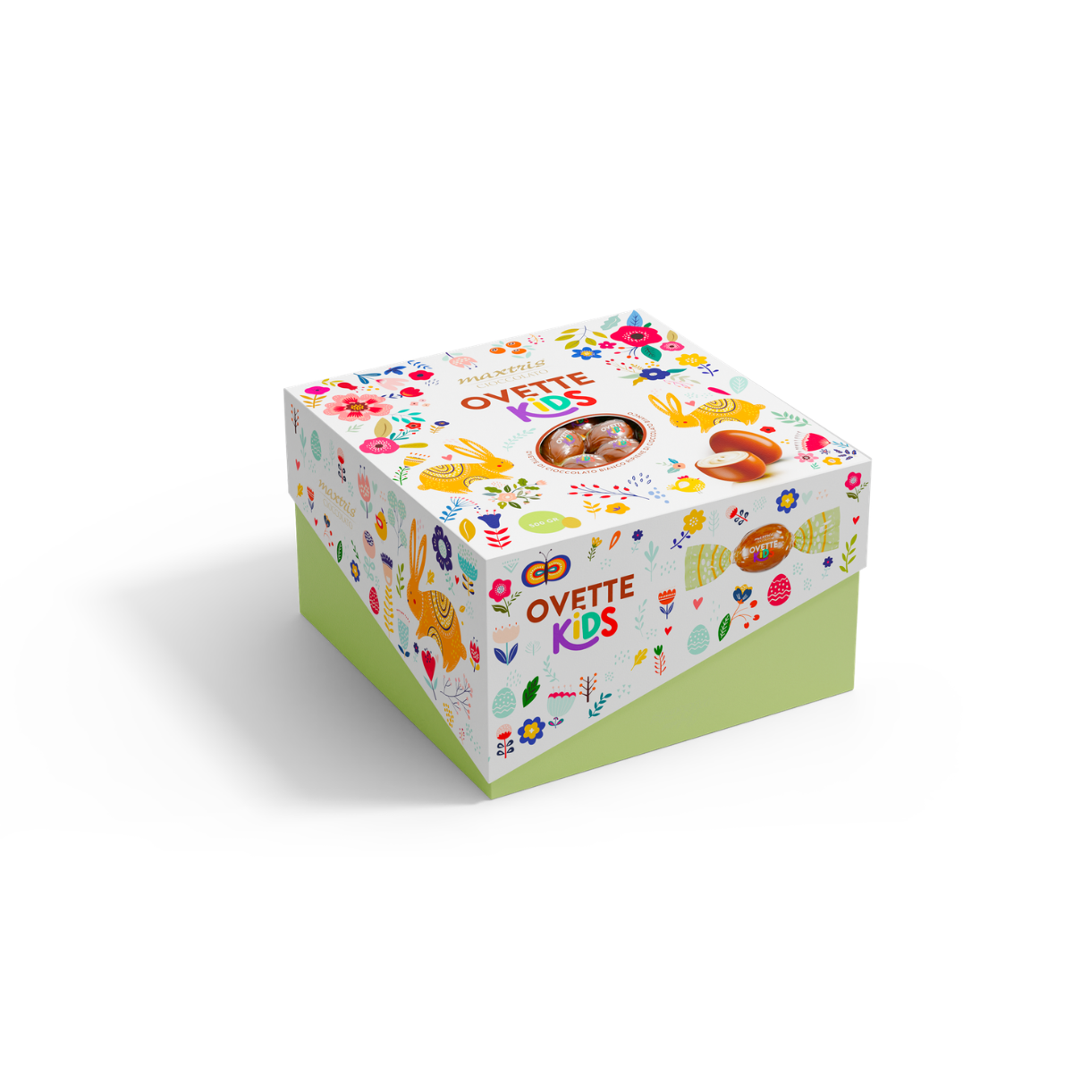 Delizia i più piccoli con le ovette Kids Maxtris, 500 g di cioccolato al latte ripieno al cioccolato bianco, incartate singolarmente per garantire freschezza e praticità. Perfette come regalo di Pasqua, da distribuire durante feste o come dolce sorpresa per bambini, queste ovette combinano la bontà del cioccolato Maxtris a un ripieno cremoso e irresistibile. Un pensiero goloso che unisce divertimento e gusto in ogni piccolo scrigno di cioccolato.