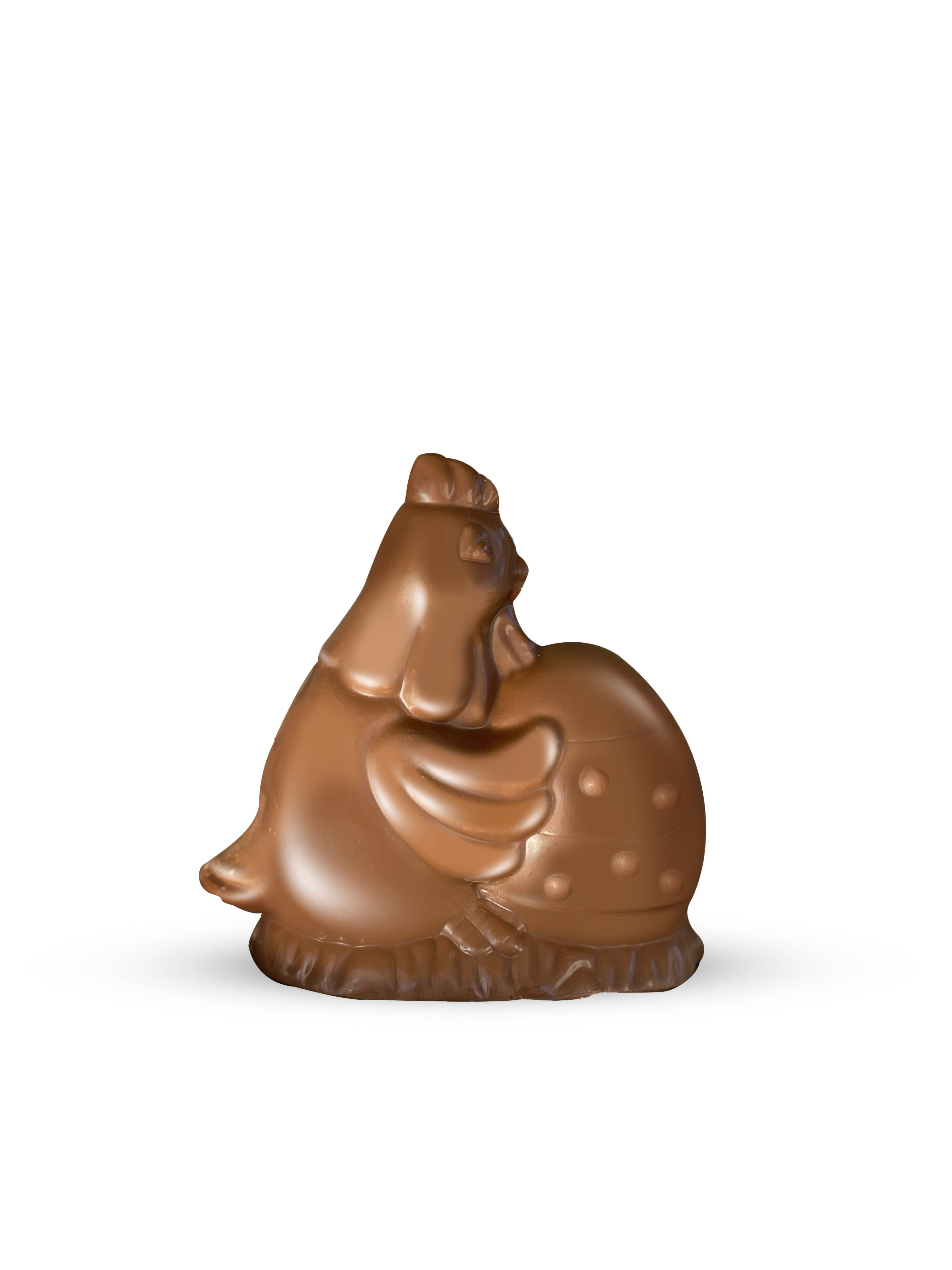 Deliziosa figura pasquale in finissimo cioccolato al latte che raffigura una gallina nell’atto di custodire il suo uovo. Un soggetto tradizionale e tenero, realizzato in 120g di cioccolato dal gusto cremoso e avvolgente. Perfetta come idea regalo o come dolce decorazione per arricchire la tavola di Pasqua con semplicità e qualità. 🐔🍫