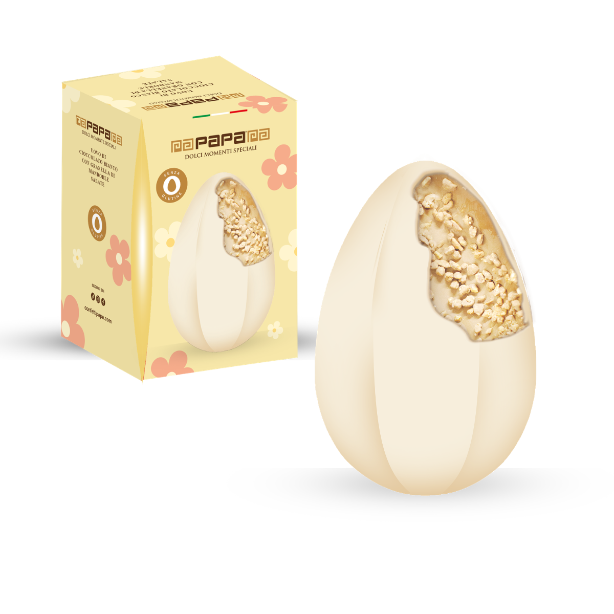 Papa – Uovo Esagonale al Cioccolato Bianco e Mandorle Tostate Salate Senza Glutine – 350g
