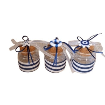 Elegante barattolo in vetro, decorato con soggetti a tema mare in assortimento, ideale come bomboniera per matrimoni, comunioni, battesimi o eventi a tema estivo. Dal design delicato e curato nei dettagli, può essere utilizzato come contenitore per confetti o piccoli pensieri, unendo estetica e funzionalità