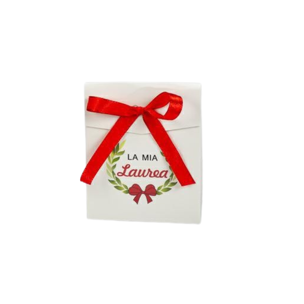 Elegante scatola nera per regali e bomboniere di laurea, con scritta “La Mia Laurea” e fiocco rosso incluso. Ideale per conservare dolci ricordi e piccoli doni in modo raffinato.