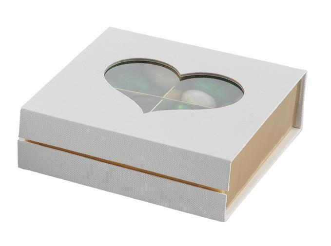 Star - Scatola Quadrata Telata con Cuore Bianca Plexi trasparente - 13x13x4