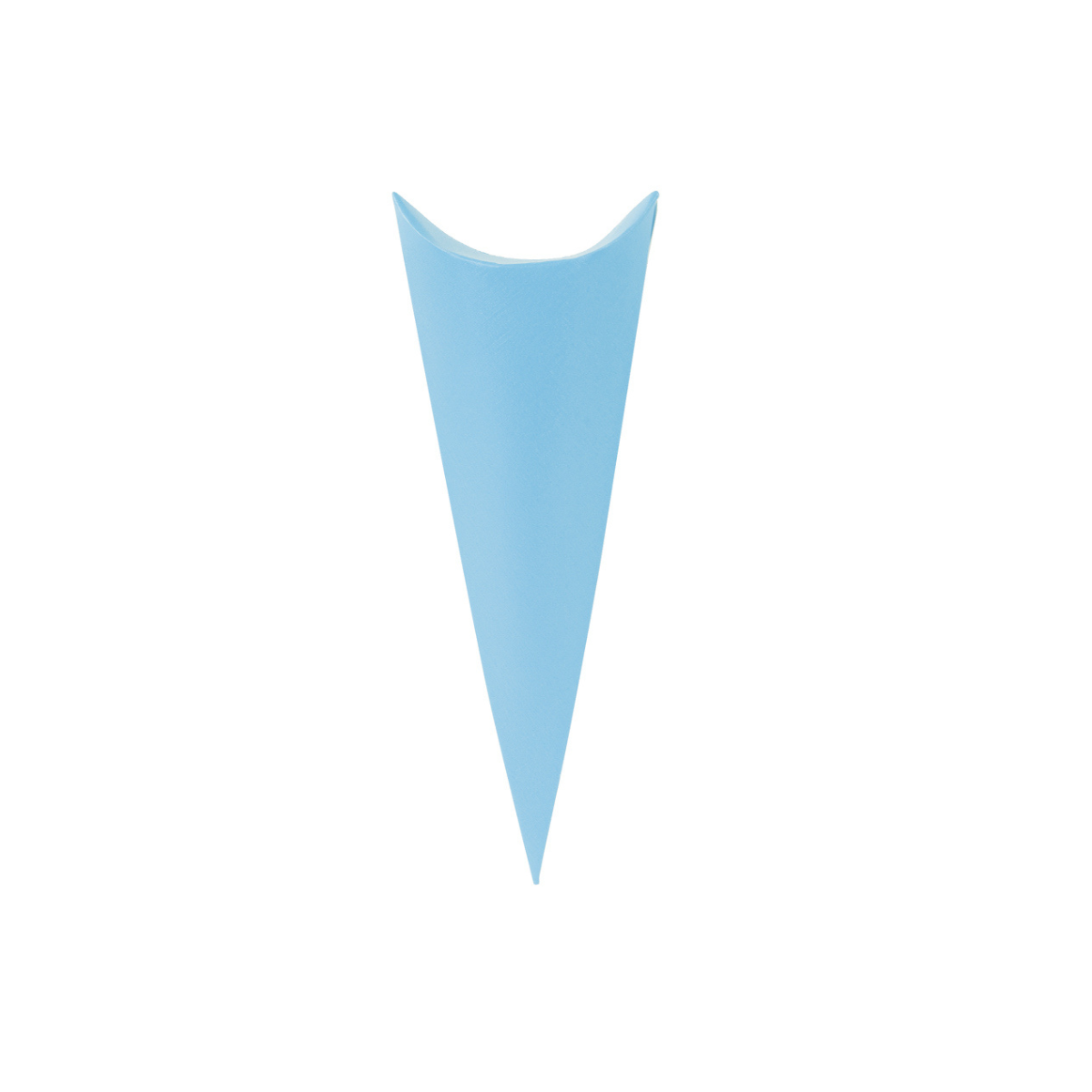 Cono busta Scotton in fibra azzurra, elegante e pratico, ideale per confetti, dolcetti o piccoli omaggi. Altezza 19 cm, confezione da 10 pezzi, perfetto per matrimoni, battesimi e altre cerimonie.