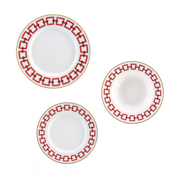🍎 Elegante piatto frutta 23 cm della collezione Roma Neoclassico Weissestal Milano, in porcellana decorata a mano con decoro rosso e filo oro 12 kt. ✨ Ispirato alla storia e alle tradizioni di Roma, dona alla tua tavola stile, personalità e raffinata eleganza. 🇮🇹💛