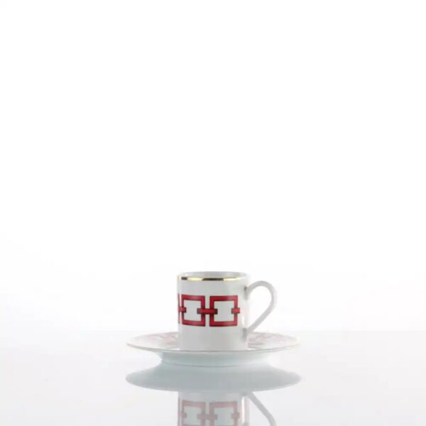 ☕ Set 6 tazzine da caffè con piattino della collezione Roma Neoclassico Weissestal Milano, in porcellana decorata a mano con decoro rosso vivo e filo oro 12 kt. ✨ Lusso, eleganza e stile unico per una tavola che sorprende e affascina. 🇮🇹💛