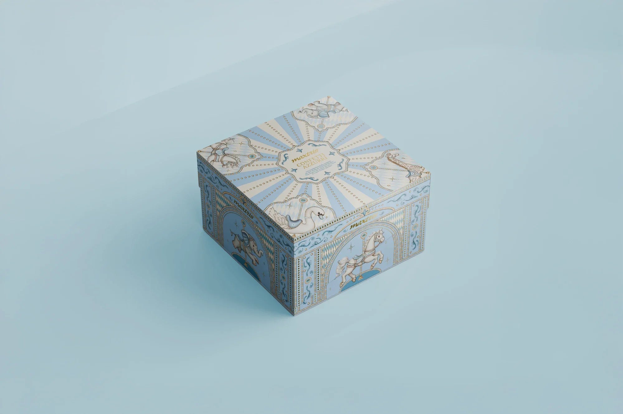 Il Vassoio Dolce Arrivo Baby Celeste Maxtris propone 500g di confetti confezionati singolarmente in doppio fiocco, custoditi in una scatola dal design elegante e luminoso.