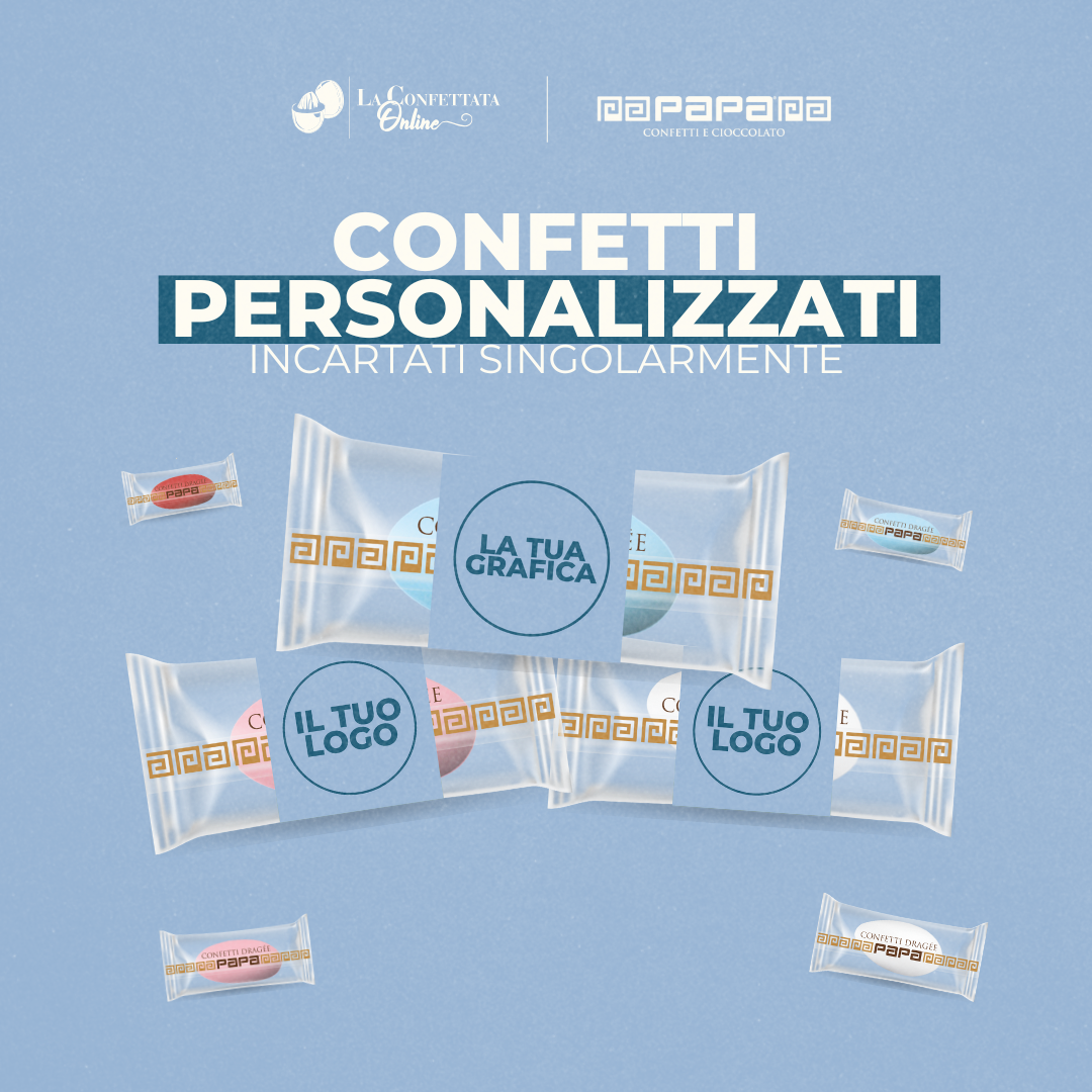 Con i confetti personalizzati con logo o grafica, dai un volto alla tua dolcezza e lasci un ricordo che resta.