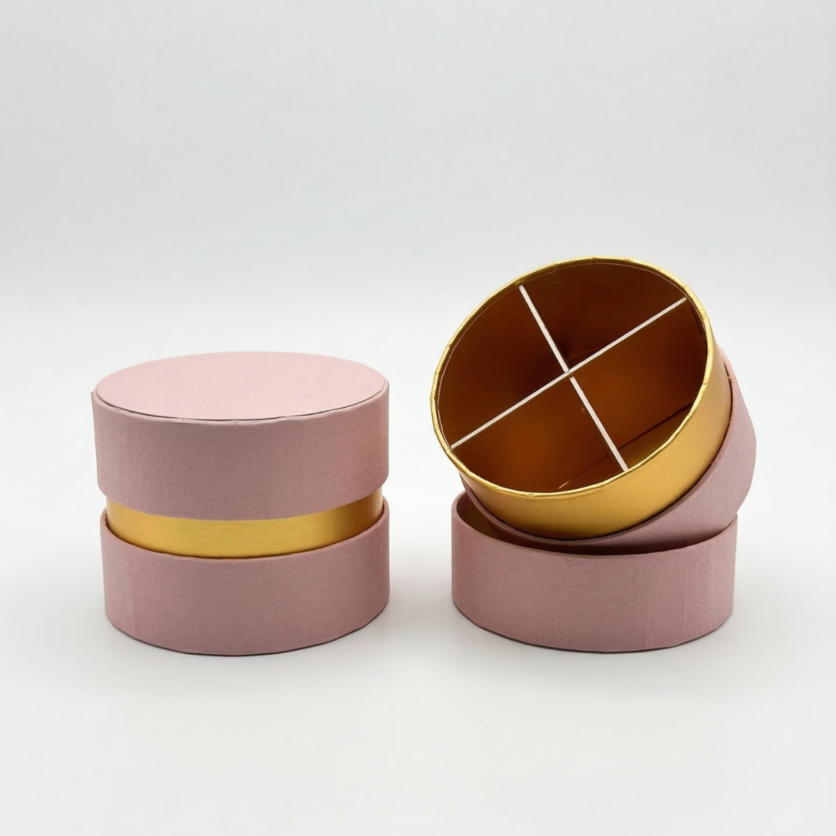 Finitura Delicata: Realizzata in carta rosa cipria di alta qualità con interni dorati a contrasto.