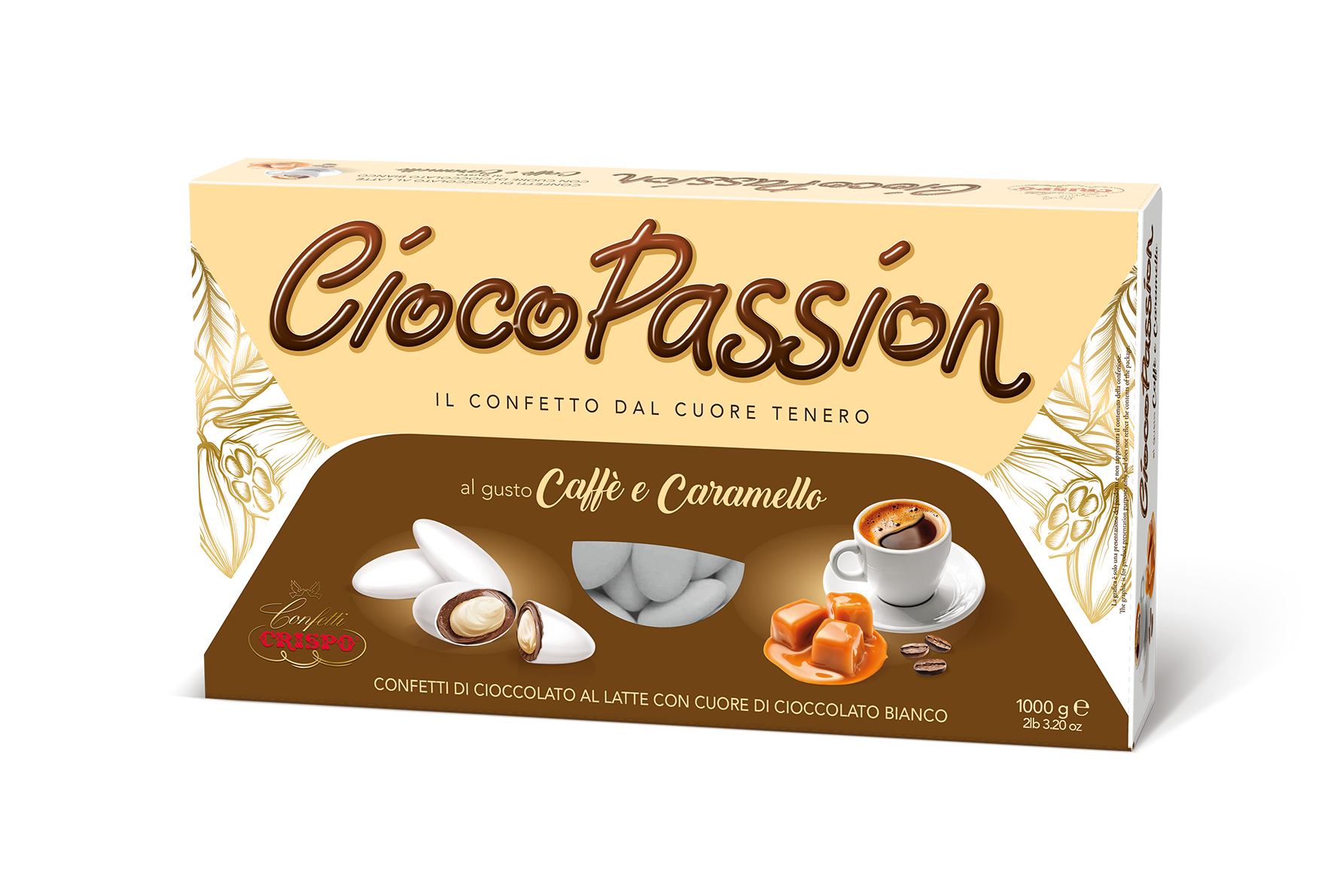 Crispo CiocoPassion – Confetti al Cioccolato al Latte con Ripieno di Cioccolato Bianco gusto Caffè e Caramello (1 kg)