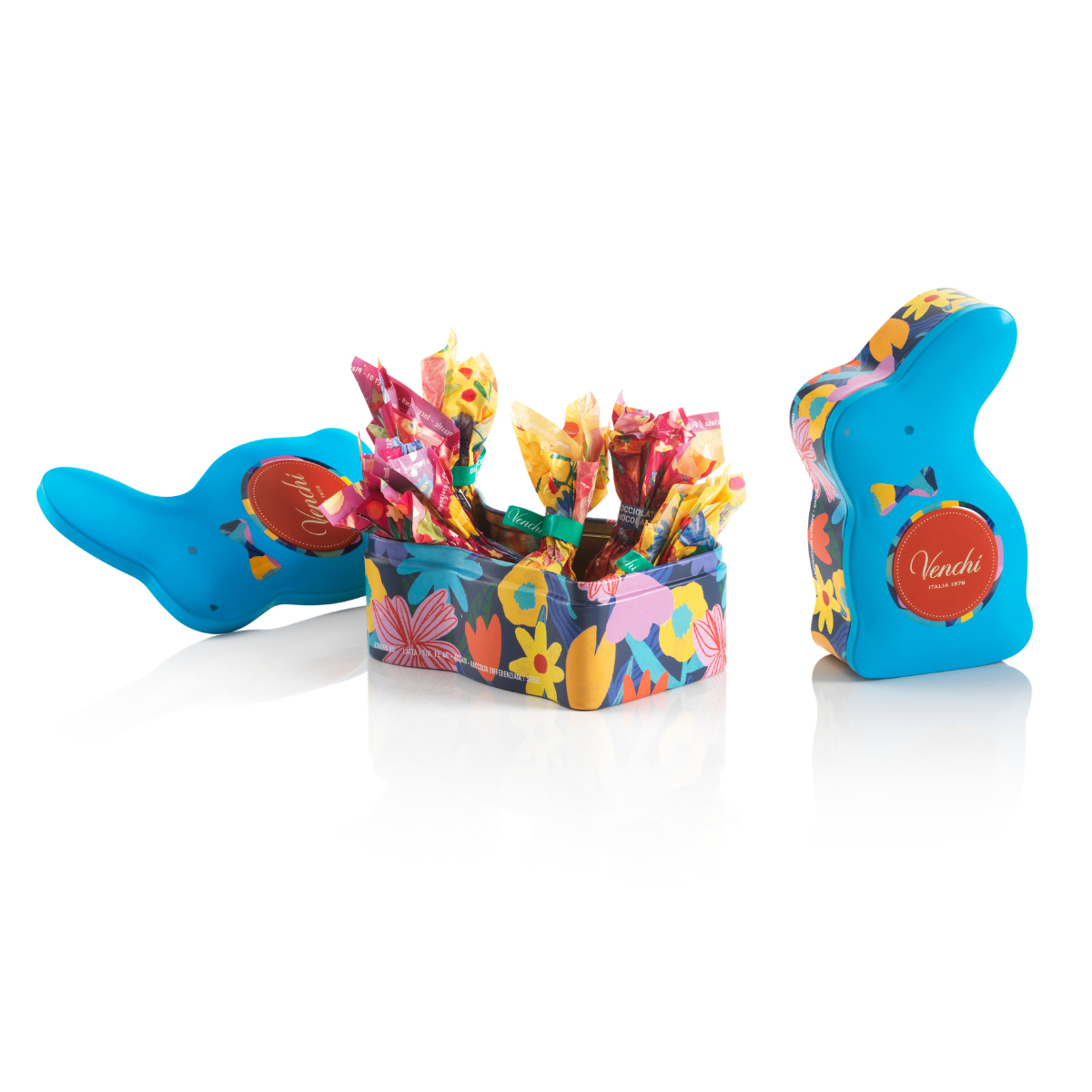Un’idea dolce e giocosa firmata Venchi. La latta a forma di coniglio contiene cioccolatini assortiti, realizzati con ingredienti selezionati e di alta qualità. Sia i cioccolatini che il packaging sono assortiti e non possono essere scelti, per una sorpresa sempre speciale. Perfetta come regalo pasquale o come piccolo pensiero goloso da condividere.