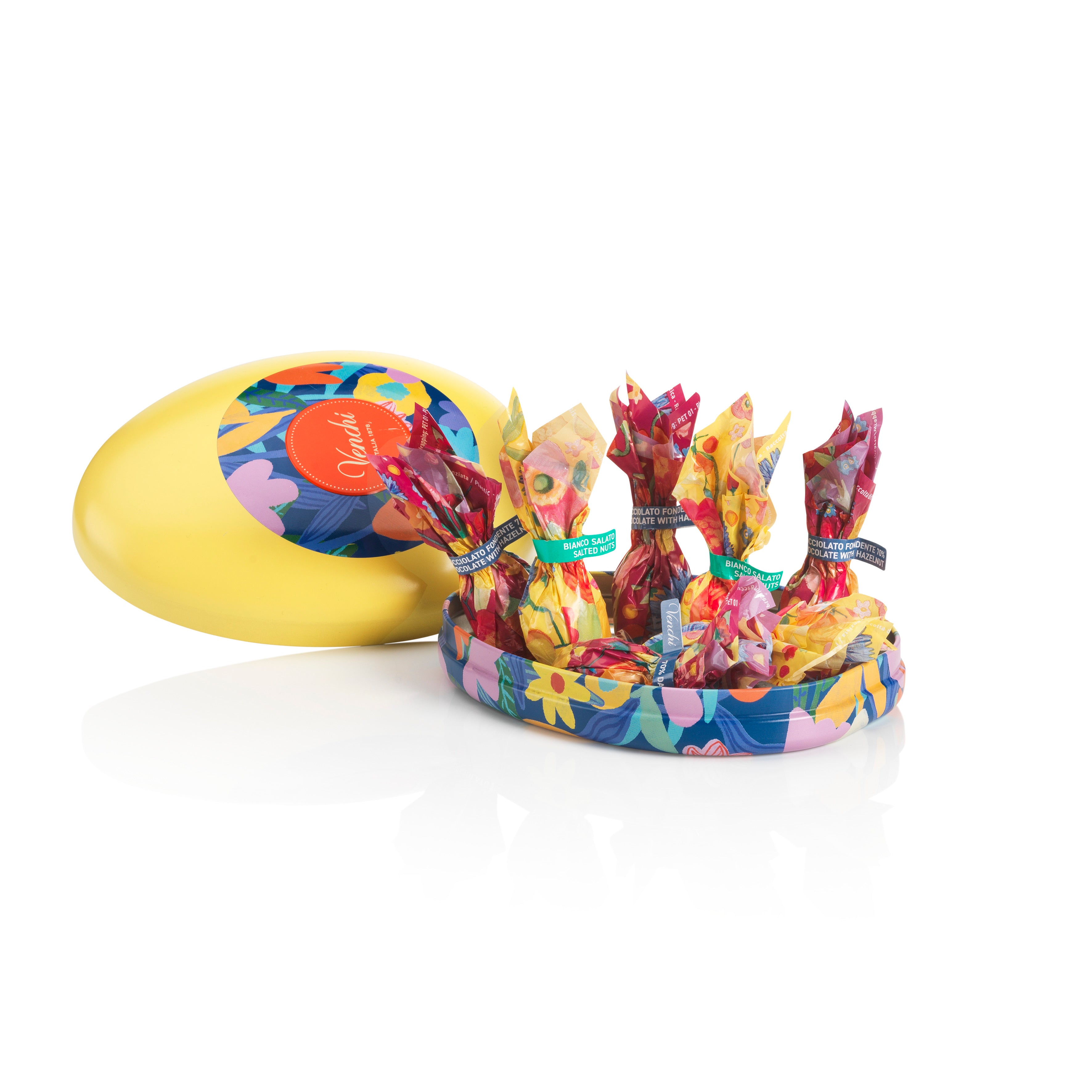 Un piccolo scrigno di golosità firmato Venchi. La latta a forma di uovo racchiude cioccolatini assortiti, realizzati con ingredienti selezionati di alta qualità. Ogni confezione è unica: sia i cioccolatini che il packaging sono assortiti e non possono essere scelti, per una sorpresa sempre speciale. Perfetta come regalo pasquale o come dolce pensiero da concedersi in ogni momento.