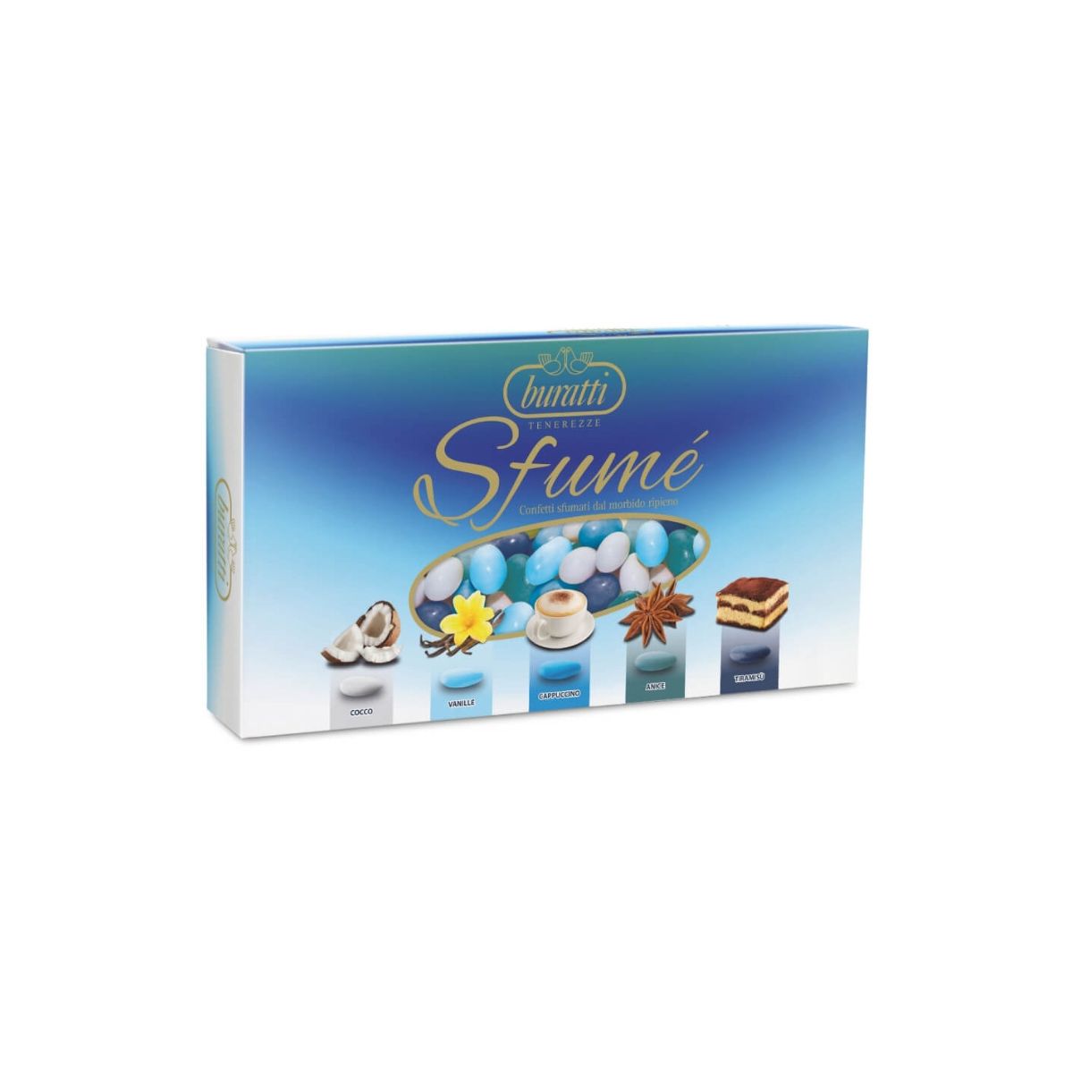 Fragranti mandorle tostate ricoperte di finissimo cioccolato bianco ai gusti pistacchio, cocco, vaniglia, cappuccino e tiramisĂč, avvolte da un sottile strato di zucchero azzurro. Perfette per cerimonie, feste e momenti speciali đ.