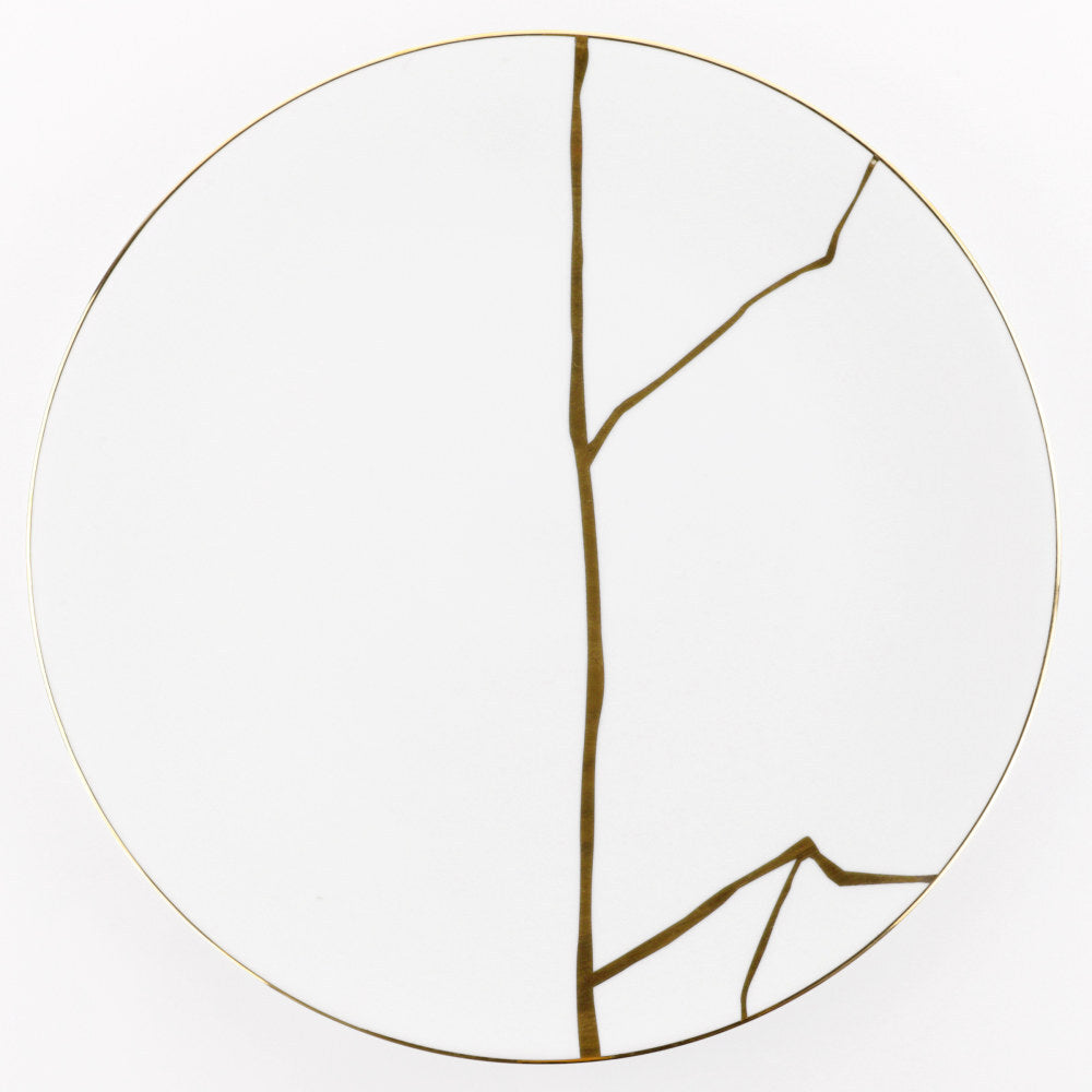 Elegante piatto tondo in porcellana con rifinitura a mano in vero filo oro 12 kt. Perfetto per portate raffinate e tavole di design đ.