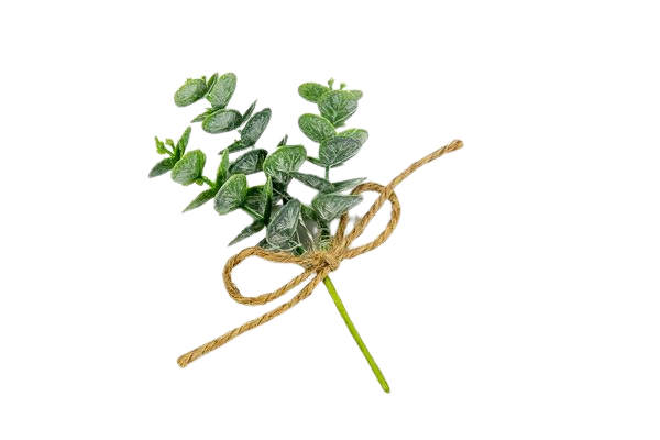 Rametto di eucalipto lungo 15 cm, perfetto per decorazioni floreali, allestimenti, composizioni e confezioni regalo. La sua forma naturale e delicata lo rende ideale per aggiungere un tocco di verde elegante a ogni progetto creativo.