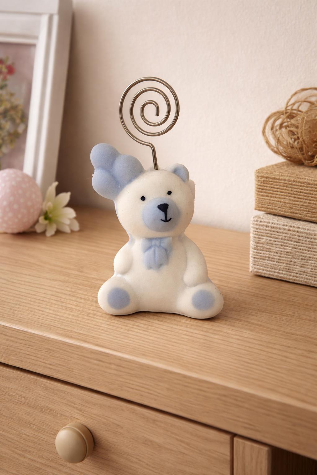 Delizioso portafoto a forma di orsetto Azzurro, perfetto per custodire ricordi di nascita, battesimi o momenti speciali. Compatto e curato nei dettagli, ideale come regalo o bomboniera.