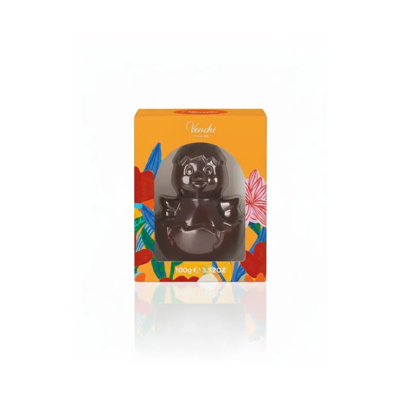 Un piccolo protagonista delle feste firmato Venchi. Questo pulcino è realizzato con pregiato cioccolato Fondente, dal gusto morbido e avvolgente, con un guscio croccante che racchiude tutta la dolcezza del cioccolato Venchi. Perfetto come regalo pasquale o come dolce coccola da condividere, porta allegria e gusto in ogni momento.