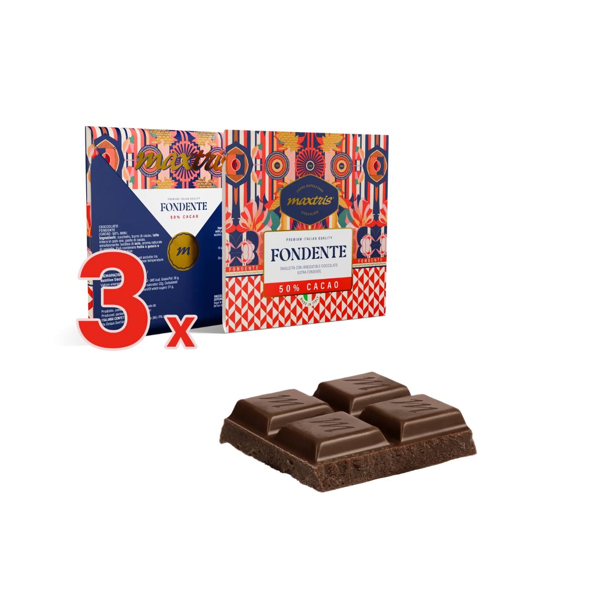 🍫 Tavolette di Cioccolato Fondente Maxtris – Cacao minimo 50% – Confezione da 3 pezzi